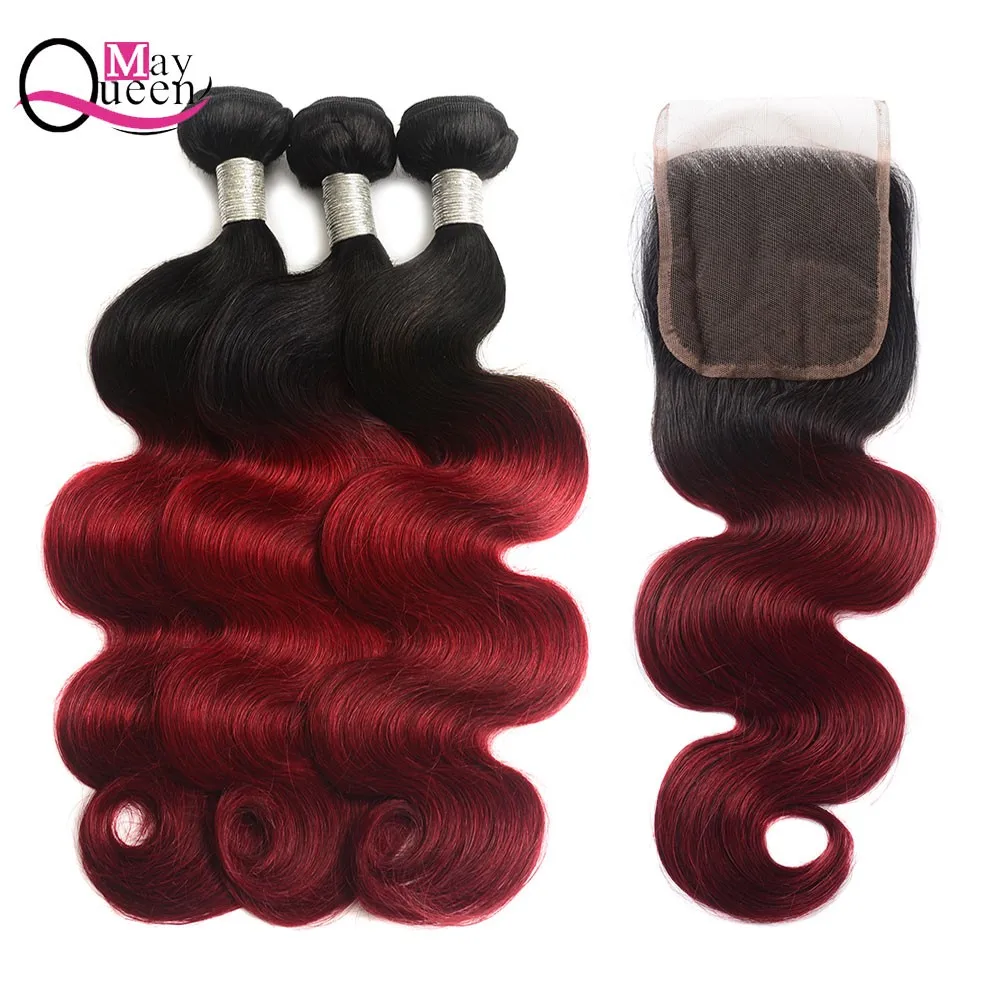 May Queen 1b Burgundy Body Wave Virgin Bundles With Closure 3pcs Brazilian Hair Weave Bundles Remy Cuticle Aligned Weft Buy Ombre Bundles With Closure Product On Alibaba Com